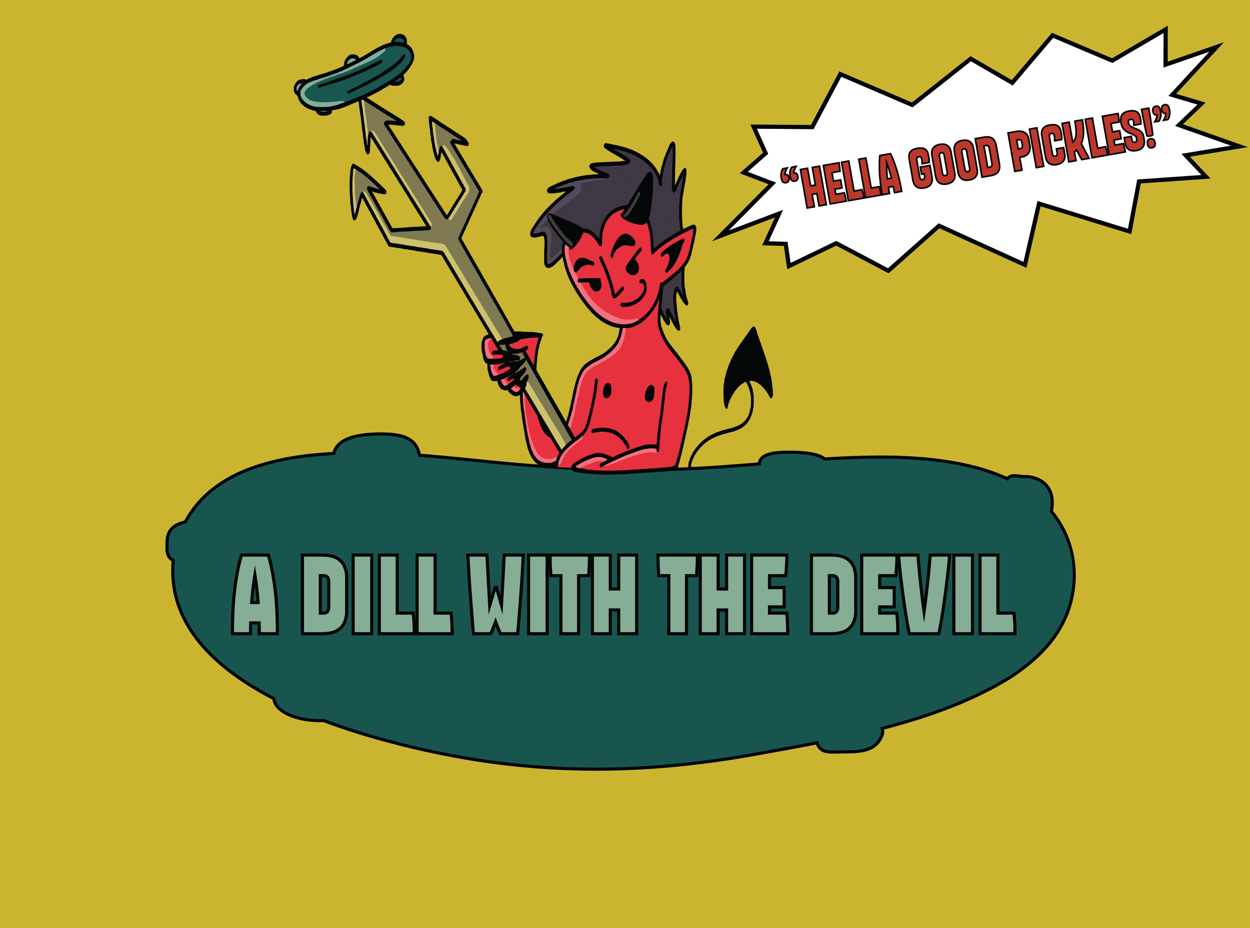 Pickle puns aside, A Dill With The Devil is a lighthearted packaging project that brings together Satan and pickled cucumbers. I first came up with this play on words working on my EAT THE RICH! hot sauces, but had no use for it in that context. Besides, it’s too good a pun for it to just be a one off sauce title.